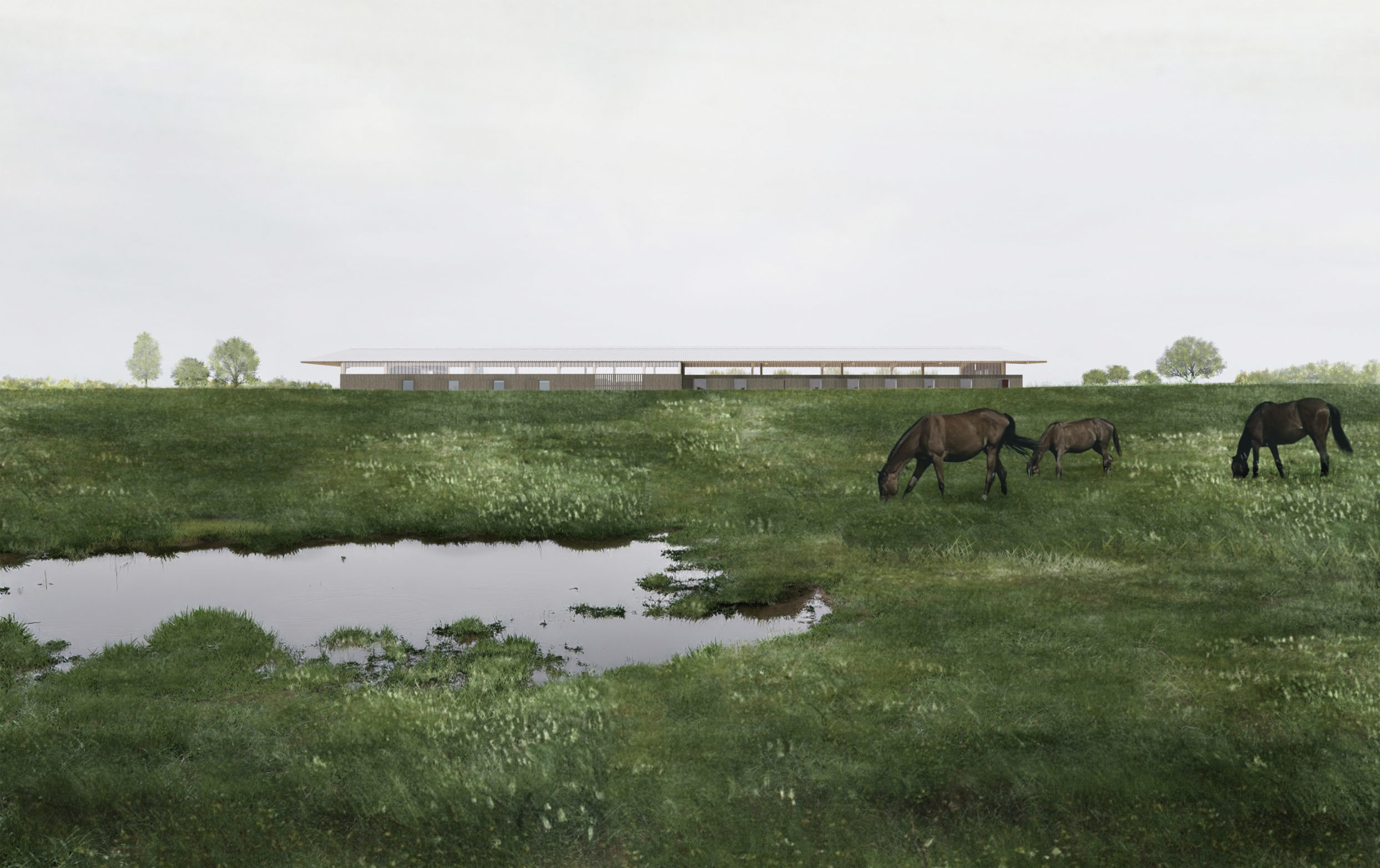 Ces nouvelles écuries prennent place au sein d’un haras existant et sont destinées à accueillir des chevaux de course (trotteurs). Les flux et usages sont optimisés pour séparer les différentes zones logistiques, les espaces sales des endroits propres tout en mettant la qualité de l’outil de travail et le bien être des humains et des animaux au cœur des réflexions.