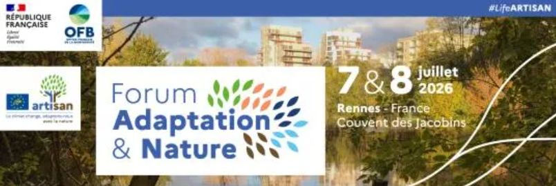 Rendez-vous du 7 au 8 juillet 2026 pour le forum Adaptation et Nature, organisé par l’Office français de la biodiversité et les partenaires de Projet Life ARTISAN.