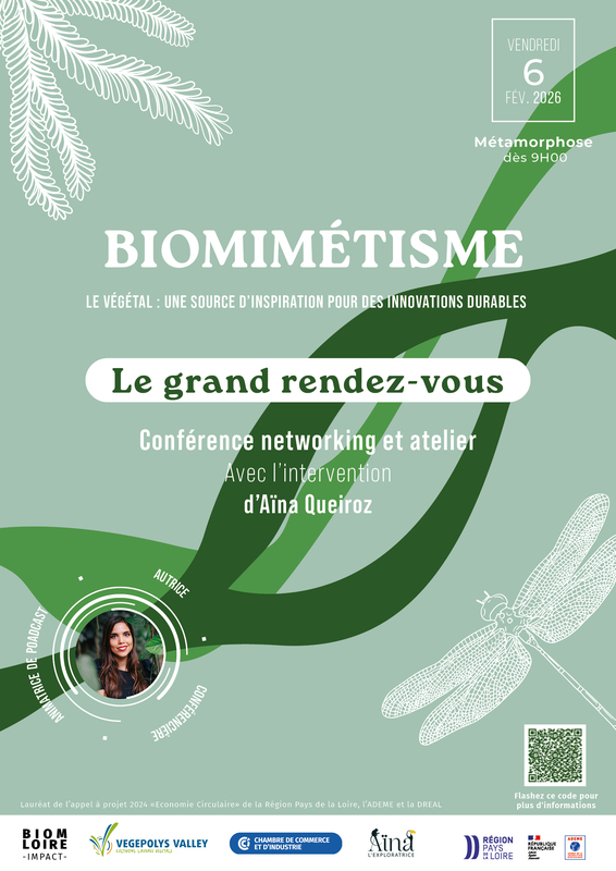 Le projet Biom’Loire Impact, porté par VEGEPOLYS VALLEY en partenariat avec la CCI pays de la Loire, traite du principe de la bioéconomie à travers une approche mêlant l’éco-conception, le biomimétisme et une inspiration centrée sur le végétal.