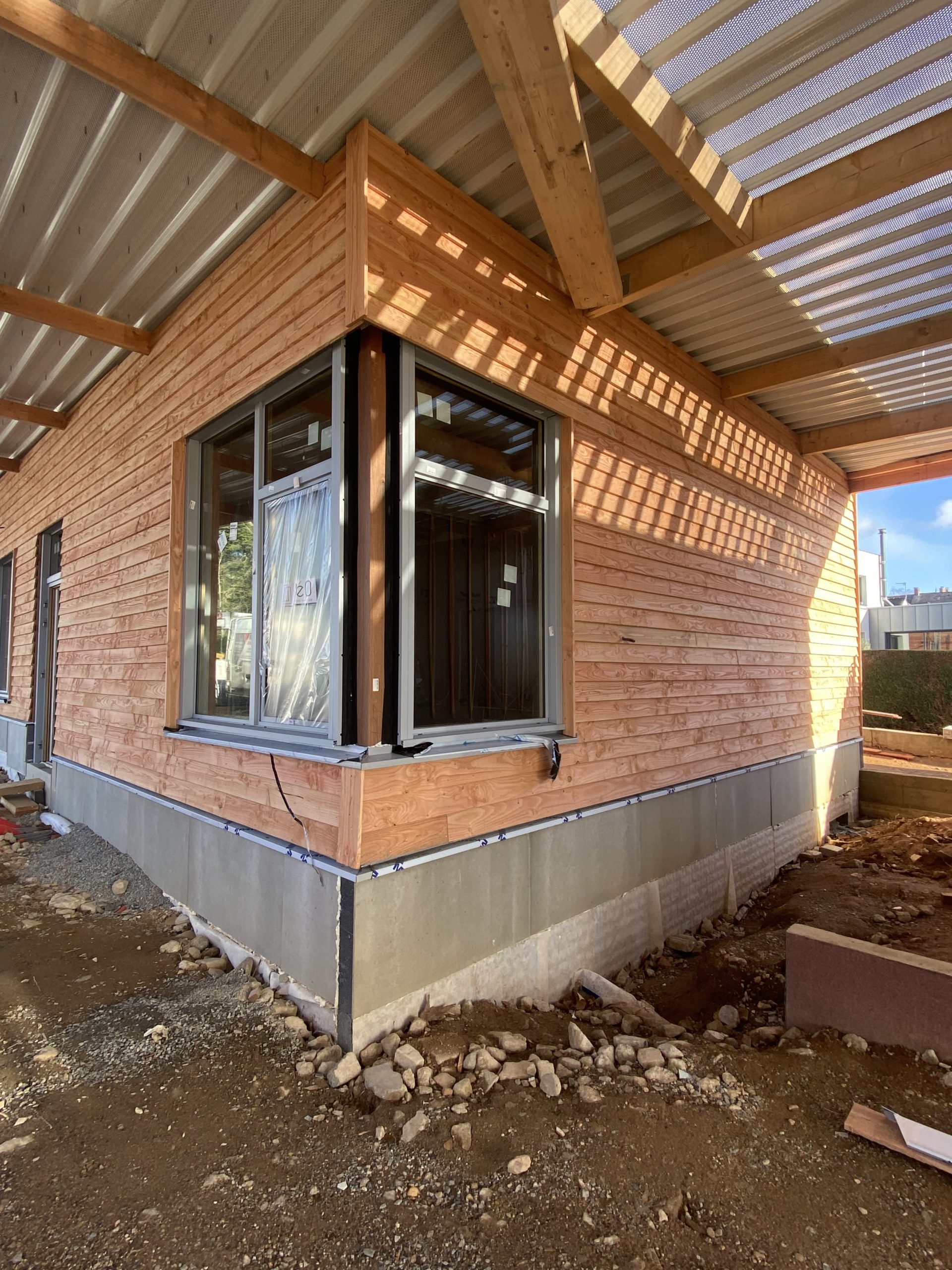 Entreprises : GO : COREVA | Ossature bois et bardage : SAS MILLET | Cloison : Guillotin | Chanvre, adobe, enduit terre crue : LB Eco Habitat
