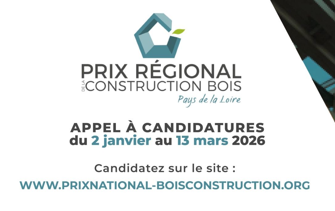 Le Prix Régional de la Construction Bois Pays de la Loire 2026 ouvre sa campagne de candidatures du 2 janvier au 13 mars 2026.